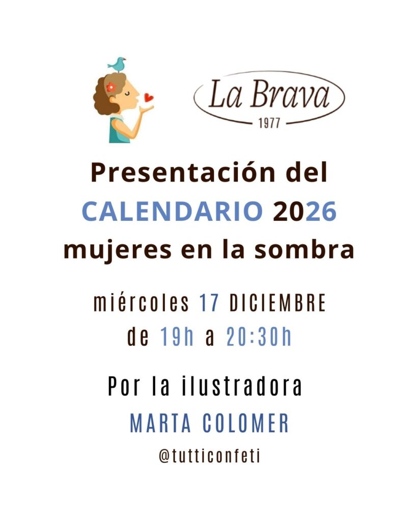 El próximo miércoles 17 de diciembre tenemos una cita muy especial: la presentación del calendario de mujeres en la sombra de Marta Colomer @tutticonfetti